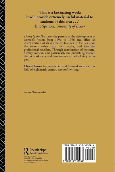 Living by the Pen traces the pattern of the development of women's fiction from 1696 to 1796 and offers an interpretation of its distinctive features. It focuses upon the writers rather than their works, and identifies professional novelists. Through examination of the extra-literary context, and particularly the publishing market, the book asks why and how women earned a living by the pen.