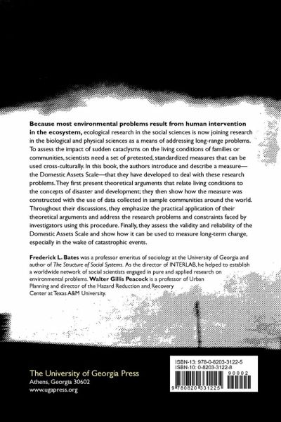 Because most environmental problems result from human intervention in the ecosystem, ecological research in the social sciences is joining research in the biological and physical sciences to address long-range problems. To assess the impact of sudden cataclysms on the living conditions of families or communities, scientists need a set of measures that can be used cross-culturally. In this book, the authors introduce and describe the Domestic Assets Scale. They first present theoretical arguments that relate living conditions to the concepts of disaster and development; they then show how the measure was constructed with the use of data collected in sample communities around the world. Throughout, they emphasize the practical application of their theoretical arguments and address the problems and constraints faced by investigators using this procedure. Finally, they assess the validity and reliability of the Domestic Assets Scale and show how it can be used to measure long-term change.