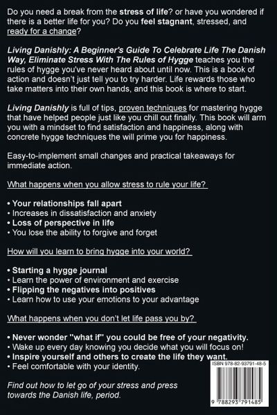 Do you need a break from the stress of life? or have you wondered if there is a better life for you? Do you feel stagnant, stressed, and ready for a change? Are you terrified of wasting your life with too many tiring years and too little peace? If you keep doing what you've always done, you'll never break the cycle. Is this positive for you? Living Danishly: A Beginner's Guide To Celebrate Life The Danish Way, Eliminate Stress With The Rules of Hygge teaches you the rules of hygge you've never heard about until now. This is a book of action and doesn't just tell you to try harder. Life rewards those who take matters into their own hands, and this book is where to start. Living Danishly is full of tips, proven techniques for mastering hygge that have helped people just like you chill out finally. This book will arm you with a mindset to find satisfaction and happiness, along with concrete hygge techniques the will prime you for happiness. Easy-to-implement small changes and practical takeaways for immediate action. What happens when you allow stress to rule your life? ¿ Your relationships fall apart ¿ Increases in dissatisfaction and anxiety ¿ Loss of perspective in life ¿ You lose the ability to forgive and forget How will you learn to bring hygge into your world? ¿ Starting a hygge journal ¿ Learn the power of environment and exercise ¿ Flipping the negatives into positives ¿ Learn how to use your emotions to your advantage What happens when you don't let life pass you by? ¿ Never wonder "what if" you could be free of your negativity. ¿ Wake up every day knowing you decide what you will focus on! ¿ Inspire yourself and others to create the life they want. ¿ Feel comfortable with your identity. Find out how to let go of your stress and press towards the Danish life, period. Create the happy life you want. Try Living Danishly: A Beginner's Guide To Celebrate Life The Danish Way, Eliminate Stress With The Rules of Hygge today by clicking the BUY NOW button at the top right of this page! P.S. You'll be able to notice a difference within 24 hours.