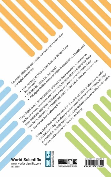 Countries, cities, and companies are investing in smart cities and digital economies. How can people thrive as their lives are disrupted and transformed? Will jobs be created or destroyed? Will digital divides narrow or widen in education and healthcare? Living Digital 2040 provides practical answers to these questions. It focuses on the future of work, education, and healthcare, because all of us experience these three social and economic institutions every day, and at seminal stages of our lives. Work, education, and healthcare also build our capabilities and relationships, so that we can live flourishing lives. Living Digital 2040 takes the view that it is up to us create a future that is better than the one today. It explores practical possibilities we could pursue, and how our collective capacity for innovation and collaboration can tackle the disruptive forces, and transform our lives for the better.