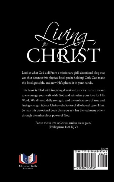 Look at what God did! From a missionary girl's devotional blog that was shut down to this physical book you're holding! Only God made this book possible, and now He's placed it in your hands. This book is filled with inspiring devotional articles that are meant to encourage your walk with God and stimulate your love for His Word. We all need daily strength, and the only source of true and lasting strength is Jesus Christ--the Savior of all who call upon Him. So may this devotional book bless you as it has blessed many others through the miraculous power of God. For to me to live is Christ, and to die is gain. (Philippians 1:21 KJV)
