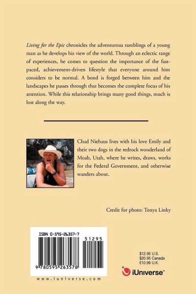 Living for the Epic chronicles the adventurous ramblings of a young man as he develops his view of the world. Through an eclectic range of experiences, he comes to question the importance of the fast-paced, achievement-driven lifestyle that everyone around him considers to be normal. A bond is forged between him and the landscapes he passes through that becomes the complete focus of his attention. While this relationship brings many good things, much is lost along the way.