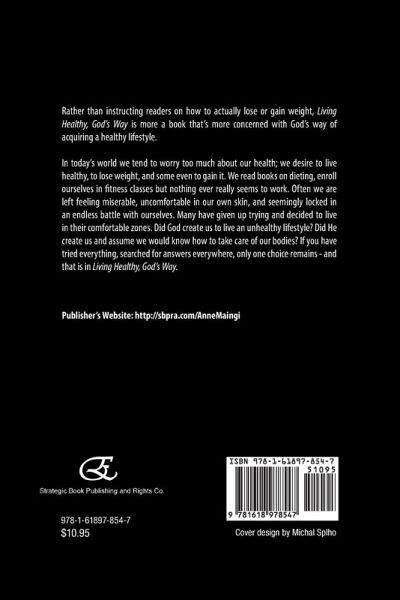 Rather than instructing readers on how to actually lose or gain weight, Living Healthy, God's Way is more a book that's more concerned with God's way of acquiring a healthy lifestyle. In today's world we tend to worry too much about our health; we desire to live healthy, to lose weight, and some even to gain it. We read books on dieting, enroll ourselves in fitness classes but nothing ever really seems to work. Often we are left feeling miserable, uncomfortable in our own skin, and seemingly locked in an endless battle with ourselves. Many have given up trying and decided to live in their comfortable zones. Did God create us to live an unhealthy lifestyle? Did He create us and assume we would know how to take care of our bodies? If you have tried everything, searched for answers everywhere, only one choice remains - and that is in Living Healthy, God's Way. Publisher's website: http://sbpra.com/AnneMaingi