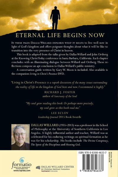 Dallas Willard explores what it means to live well now in light of God's kingdom. Now in paperback, this book is adapted from the talks given at the February 2013 Dallas Willard Center "Knowing Christ Today" conference. Each chapter is followed with an illuminating dialogue between Dallas Willard and John Ortberg.