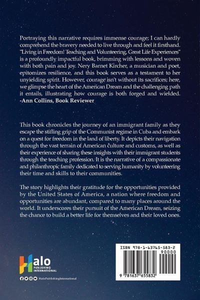This book chronicles the journey of an immigrant family as they escape the stifling grip of the Communist regime in Cuba and embark on a quest for freedom in the land of liberty. It depicts their navigation through the vast terrain of American culture and customs, as well as their experience of sharing these insights with their immigrant students through the teaching profession. It is the narrative of a compassionate and philanthropic family dedicated to serving humanity by volunteering their time and skills to their communities.The story highlights their gratitude for the opportunities provided by the United States of America, a nation where freedom and opportunities are abundant, compared to many places around the world. It underscores their pursuit of the American Dream, seizing the chance to build a better life for themselves and their loved ones.