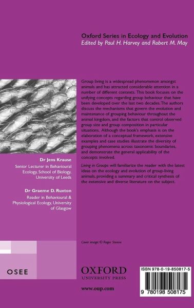 Group living is a widespread phenomenon amongst animals and has attracted considerable attention in a number of different contexts. This book focuses on the unifying concepts regarding group behaviour that have been developed over the last two decades. The authors discuss the mechanisms that govern the evolution and maintenance of grouping behaviour throughout the animal kingdom, and the factors that control observed group size and group composition in particular situations. Although the book's emphasis is on the elaboration of a conceptual framework, extensive examples and case studies illustrate the diversity of grouping phenomena across taxonomic boundaries, and demonstrate the general applicability of the concepts involved. Living in Groups will familiarize the reader with the latest ideas on the ecology and evolution of group-living animals, providing a summary and critical synthesis of the extensive and diverse literature on the subject.
