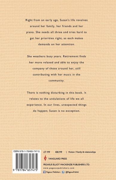 Right from an early age, Susan's life revolves around her family, her friends and her piano. She needs all three and tries hard to get her priorities right, as each makes demands on her attention. She weathers busy years. Retirement finds her more relaxed and able to enjoy the company of those around her, still contributing with her music in the community. There is nothing disturbing in this book. It relates to the undulations of life we all experience. In our lives, unexpected things do happen; Susan is no exception.