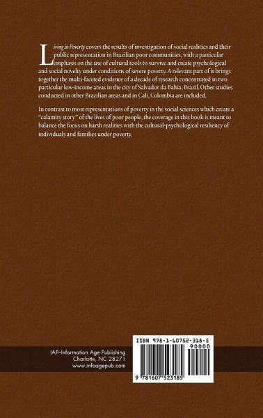 A volume in Advances in Cultural Psychology Series Editor: Jaan Valsiner, Clark University This book covers the results of investigation of social realities and their public representation in Brazilian poor communities, with a particular emphasis on the use of cultural tools to survive and create psychological and social novelty under conditions of severe poverty. A relevant part of it brings together the multi-faceted evidence of a decade of research concentrated in two particular low-income areas in the city of Salvador da Bahia, Brazil. Other studies conducted in other Brazilian areas and in Cali, Colombia are included. In contrast to most representations of poverty in the social sciences which create a "calamity story" of the lives of poor people, the coverage in this book is meant to balance the focus on harsh realities with the cultural-psychological resiliency of individuals and families under poverty.