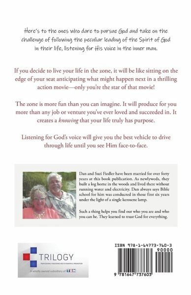 Here's to the ones who dare to pursue God and take on the challenge of following the peculiar leading of the Spirit of God in their life, listening for His voice in the inner man. If you decide to live your life in the zone, it will be like sitting on the edge of your seat anticipating what might happen next in a thrilling action movie-only you're the star of that movie! The zone is more fun than you can imagine. It will produce for you more than any job or venture you've ever loved and succeeded in. It creates a knowing that your life truly has purpose. Listening for God's voice will give you the best vehicle to drive through life until you see Him face-to-face.