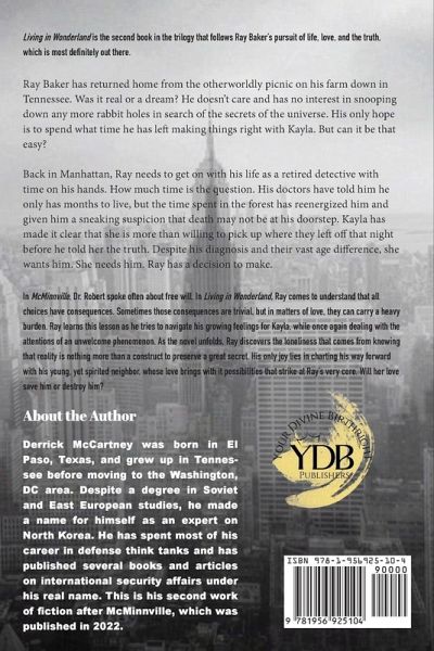 Living in Wonderland is the second book in the trilogy that follows Ray Baker's pursuit of life, love, and the truth, which is most definitely out there. Ray Baker has returned home from the otherworldly picnic on his farm down in Tennessee. Was it real or a dream? He doesn't care and has no interest in snooping down any more rabbit holes in search of the secrets of the universe. His only hope is to spend what time he has left making things right with Kayla. But can it be that easy? Back in Manhattan, Ray needs to get on with his life as a retired detective with time on his hands. How much time is the question. His doctors have told him he only has months to live, but the time spent in the forest has reenergized him and given him a sneaking suspicion that death may not be at his doorstep. Kayla has made it clear that she is more than willing to pick up where they left off that night before he told her the truth. Despite his diagnosis and their vast age difference, she wants him. She needs him. Ray has a decision to make. In McMinnville, Dr. Robert spoke often about free will. In Living in Wonderland, Ray comes to understand that all choices have consequences. Sometimes those consequences are trivial, but in matters of love, they can carry a heavy burden. Ray learns this lesson as he tries to navigate his growing feelings for Kayla, while once again dealing with the attentions of an unwelcome phenomenon. As the novel unfolds, Ray discovers the loneliness that comes from knowing that reality is nothing more than a construct to preserve a great secret. His only joy lies in charting his way forward with his young, yet spirited neighbor, whose love brings with it possibilities that strike at Ray's very core. Will her love save him or destroy him?
