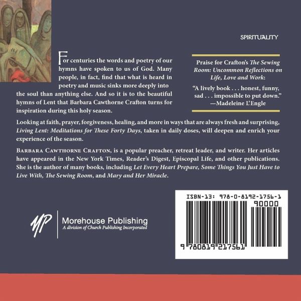 BARBARA CAWTHORNE CRAFTON is a popular preacher, retreat leader, and writer who teaches at Marble Collegiate Church and at the General Theological Seminary in New York City. Her articles have appeared in the New York Times, Reader's Digest, Episcopal Life, and many other publications. She is the author of many books, including Called, The Courage to Grow Old, The Sewing Room, Living Lent, and many others. She lives in Metuchen, New Jersey.