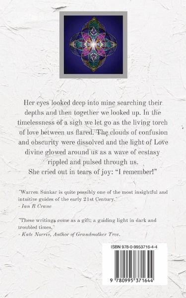 Her eyes looked deep into mine searching their depths and then together we looked up. In the timelessness of a sigh we let go as the living torch of love between us flared. The clouds of confusion and obscurity were dissolved and the light of Love divine glowed around us as a wave of ecstasy rippled and pulsed through us. She cried out in tears of joy: "I remember!"