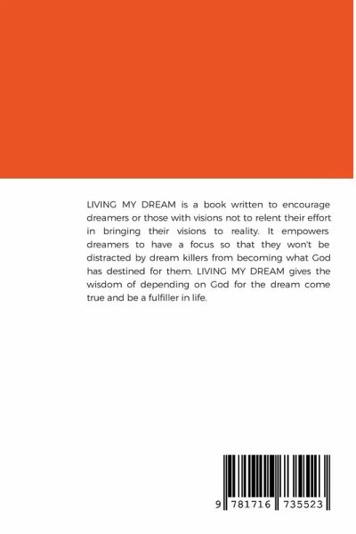 LIVING MY DREAM is a book written to encourage dreamers or those with visions not to relent their effort in bringing their visions to reality. It empowers dreamers to have a focus so that they won't be distracted by dream killers from becoming what God has destined for them. LIVING MY DREAM gives the wisdom of depending on God for the dream come true and be a fulfiller in life.