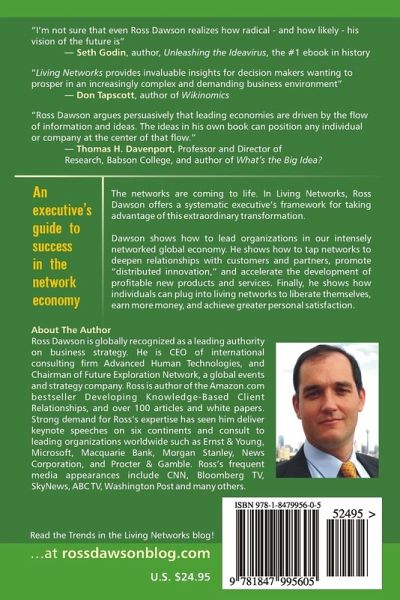 An executive's guide to success in the network economy The networks are coming to life. In Living Networks, Ross Dawson offers a systematic executive's framework for taking advantage of this extraordinary transformation. Dawson shows how to lead organizations in our intensely networked global economy. He shows how to tap networks to deepen relationships with customers and partners, promote "distributed innovation," and accelerate the development of profitable new products and services. Finally, he shows how individuals can plug into living networks to liberate themselves, earn more money, and achieve greater personal satisfaction.