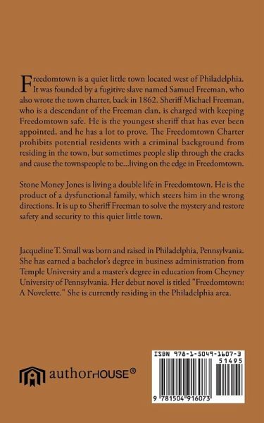 Freedomtown is a quiet little town located west of Philadelphia. It was founded by a fugitive slave named Samuel Freeman, who also wrote the town charter, back in 1862. Sheriff Michael Freeman, who is a descendant of the Freeman clan, is charged with keeping Freedomtown safe. He is the youngest sheriff that has ever been appointed, and he has a lot to prove. The Freedomtown Charter prohibits potential residents with a criminal background from residing in the town, but sometimes people slip through the cracks and cause the townspeople to be...living on the edge in Freedomtown. Stone Money Jones is living a double life in Freedomtown. He is the product of a dysfunctional family, which steers him in the wrong directions. It is up to Sheriff Freeman to solve the mystery and restore safety and security to this quiet little town.