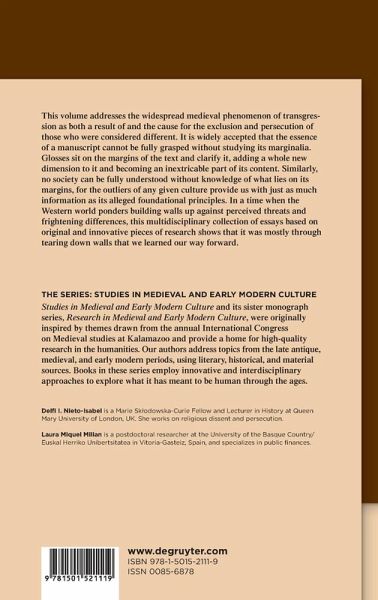 This volume addresses the widespread medieval phenomenon of transgression as both a result of and the cause for the exclusion and persecution of those who were considered different. It is widely accepted that the essence of a manuscript cannot be fully grasped without studying its marginalia. Glosses sit on the margins of the text and clarify it, adding a whole new dimension to it and becoming an inextricable part of its content. Similarly, no society can be fully understood without knowledge of what lies on its margins, for the outliers of any given culture provide us with just as much information as its alleged foundational principles. In a time when the Western world ponders building walls up against perceived threats and frightening differences, this multidisciplinary collection of essays based on original and innovative pieces of research shows that it was mostly through tearing down walls that we learned our way forward.