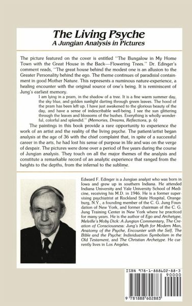 The art in this book provide a rare opportunity to experience the work of an artist and the reality of the living psyche. The patient/artist began analysis at the age of 36 with the chief complaint that, in spite of a successful career in the arts, he had lost his sense of purpose in life and was on the verge of despair. The pictures were done over a period of five years during the course of Jungian analysis. They touch on all the major themes of the analysis and constitute a remarkable record of an analytic experience that ranged from the heights to the depths, from the infernal to the sublime. Edward F. Edinger was born on December 13, 1922 in Cedar Rapids, Iowa, earning his BA in chemistry at Indiana University and his MD at Yale University in 1946. He was a military doctor in the United States Navy in Panama. In New York in 1951, he began his analysis with Mary Esther Harding, who had been associated with C. G. Jung. Edinger was a psychiatrist supervisor at Rockland State Hospital in Orangeburg, New York, and later founder member of the C.G. Jung Foundation in Manhattan and the CG Jung Institute in New York. He was president of the institute from 1968 until 1979, when he moved to Los Angeles. There he continued his practice for 19 years, becoming senior analyst at the CG Jung Institute of Los Angeles.