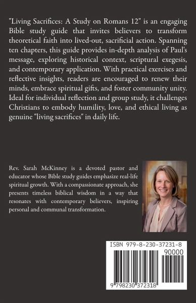 "Living Sacrifices: A Study on Romans 12" is an engaging Bible study guide that invites believers to transform theoretical faith into lived-out, sacrificial action. Spanning ten chapters, this guide provides in-depth analysis of Paul's message, exploring historical context, scriptural exegesis, and contemporary application. With practical exercises and reflective insights, readers are encouraged to renew their minds, embrace spiritual gifts, and foster community unity. Ideal for individual reflection and group study, it challenges Christians to embody humility, love, and ethical living as genuine "living sacrifices" in daily life.