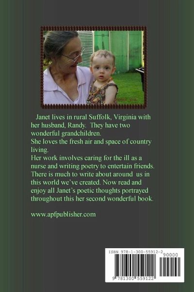 A book of poetry covering the simplicity of life, when love of family, living and caring for each other is the main ingredient...See life through this lovely poets eyes and you too will feel the loving happiness and joy that can be found in the most simplistic way, through accepting the Lord knows best and that His love is always there for us to reap...