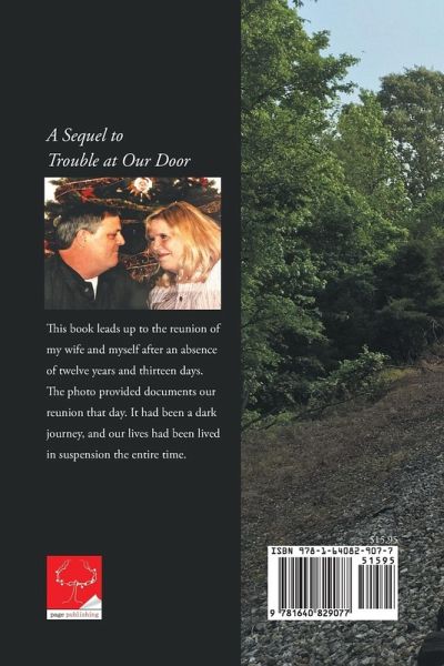 This book leads up to the reunion of my wife and myself after an absence of twelve years and thirteen days. The photo provided documents our reunion that day. It had been a dark journey, and our lives had been lived in suspension the entire time.