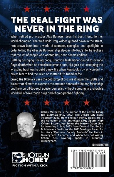 When retired pro wrestler Alex Donovan sees his best friend, former world champion 'The Wild Child' Ray Wilder, gunned down in the street, he's drawn back into a world of spandex, spangles, and spotlights in order to find the killer. As Donovan digs deeper into Ray's life, he realizes that the list of people who wanted Ray dead seems endless. Battling his aging, failing body, Donovan feels honor-bound to avenge Ray's death when no one else seems to care. His guilt over escaping the wrestling business to build a new life when Ray couldn't - or wouldn't - drives him to find the killer, no matter if it's friend or foe. Living the Gimmick uses the backdrop of pro wrestling in the 1980s and its current climate to examine the strained bonds of a lifelong friendship and how an all-too-real abuser can exist without scrutiny in a showbiz world full of fake tough guys and choreographed fighting Early Praise for Living the Gimmick "LIVING THE GIMMICK is a bruising romp about pro wrestling, friendship, betrayal, and the lies we let ourselves believe. Bobby Mathews' career as a journalist serves him well in his debut novel; the prose is punchy, the atmosphere pungent. Mathews depicts a world of scripted violence, of showmanship and pain, where the truth is hidden behind the glam and glitter." -Chris Swann, USA Today bestseller, winner of Southern Living's Best Southern Books of 2017 Award "Mathews's impressive debut murder mystery is as much a gritty homage to the excessive, violent, glam rock world of professional wrestling as it is a testimony of how it's evolved from its oftentimes ruthless heyday to the glitzy entertainment machine it is now. LIVING THE GIMMICK is a headlock wrapped in noir sensibilities as it slams down a universal question: how much do we really know the ones we love and trust?" -Heather Levy, author WALKING THROUGH NEEDLES " High-class writing about hard-luck people. Timely, bold and brutal. Bobby is a writer to watch." -Libby Cudmore, author of THE BIG REWIND "At times a wild and surreal trip through the subculture of old school pro wrestling and at other times a deft love letter to the passions that drive us all, LIVING THE GIMMICK is a rollicking good time. Bobby Mathews obviously loves three things: The South, pro wrestling, and a good mystery." -S.A. Cosby, NY Times bestselling author of RAZORBLADE TEARS "Mathews writes in smooth, almost transparent strokes that propel the narrative along with such force, you'll read the entire novel in one sitting. The seedy world of wrestling and the badasses who populate it come alive on the page. Kayfabe? Hardly. This is as real and gritty as noir gets." -Hank Early, author of HEAVEN'S CROOKED LITTLE FINGER "Mathews has written a glorious, noir-steeped homage to pro wrestling, all the more remarkable in its ardent fidelity. LIVING THE GIMMICK rocks hard." -Laird Barron, author of Blood Standard