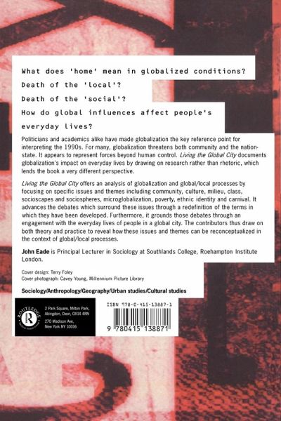 Politicians and academics alike have made globalization the key reference point for interpreting the 1990s. For many, globalization threatens both community and the nation-state. It appears to represent forces beyond human control. Living the Global City documents globalization's impact on everyday lives by drawing on research rather than rhetoric and arrives at a very different perspective. Living the Global City offers an analysis of globalization and global/local processes by focussing on specific issues and themes which include community, culture, milieu, socioscapes and sociospheres, microglobalization, poverty, ethnic identity and carnival. By advancing the debates which surround these issues through a redefinition of the terms in which they have been developed and engagement with the everyday lives of people in a global city, this book reveals how such key concepts as community, culture, class, poverty and identity can be reconceptualized in the context of global/local processes.