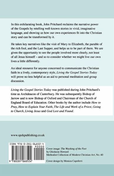 In this exhilarating book, John Pritchard reclaims the narrative power of the gospels by retelling well-known stories in vivid, imaginative language, and showing us how our own stories fit into the Christian story and can be transformed by it. He takes key narratives like the visit of Mary to Elizabeth, the parable of the rich fool, and the Last Supper, and helps us to be part of them. We are given the opportunity to see the people involved more clearly, not least of all Jesus himself - and so to consider whether we might live our own lives a little differently. An ideal resource for anyone concerned to communicate the Christian faith in a lively, contemporary style, Living the Gospel Stories Today will prove no less helpful as an aid to personal meditation and group discussion.