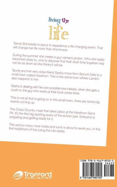 Living the Life Tannis Schroeder is about to experience a life-changing event that will change her life more than she knows. During the summer, she meets a guy named Landon, whom she easily becomes close to, only to discover that their short time together may not be as short as she thinks it will be. Tannis and her very close friend Sasha move from Spruce Dale to a small town called Hawthorn. This is the same town where Landon also happens to live. Sasha is dealing with her own possible love interest when she gets a crush on the guy who works at their local corner store. This is not all that is going on in this small town; there are some big events coming up. The cross-country meet that takes place at the Hawthorn Sand Pit-it's the first big sporting event of the school year. Everyone is preparing and getting ready for it. This and so many more twists and turns are about to await you in this first installment of the Living the Life series.