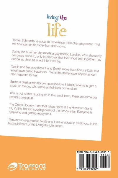 Living the Life Tannis Schroeder is about to experience a life-changing event that will change her life more than she knows. During the summer, she meets a guy named Landon, whom she easily becomes close to, only to discover that their short time together may not be as short as she thinks it will be. Tannis and her very close friend Sasha move from Spruce Dale to a small town called Hawthorn. This is the same town where Landon also happens to live. Sasha is dealing with her own possible love interest when she gets a crush on the guy who works at their local corner store. This is not all that is going on in this small town; there are some big events coming up. The cross-country meet that takes place at the Hawthorn Sand Pit-it's the first big sporting event of the school year. Everyone is preparing and getting ready for it. This and so many more twists and turns are about to await you in this first installment of the Living the Life series.