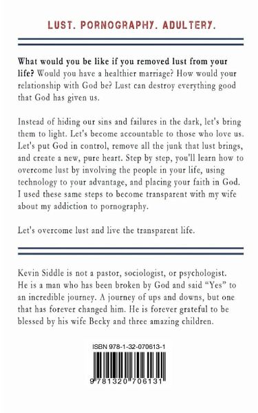 What would you be like if lust was removed from your life? Would you have a healthier marriage? How would your relationship with God be? Lust can destroy everything good that God has given us. Instead of hiding our sins and failures in the dark, let's bring them to the light. Let's become accountable to those who love us. Let's put God in control, remove all the junk that lust brings, and create a new, pure heart. Step by step, you'll learn how to overcome lust by involving the people in our life, using technology to your advantage, and placing your faith in God. I used these same steps to become transparent with my wife about my addiction to pornography.