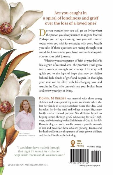 Are you caught in a spiral of loneliness and grief over the loss of a loved one? Do you wonder how you will go on living when the person you always turned to is gone forever? Perhaps you are questioning how you will survive today when you wish for yesterday with every breath you take. If these questions are racing through your mind, let Donna take your hand and walk alongside you on your grief journey. ¿¿ Whether you are a person of faith or your belief is like a grain of mustard seed, she promises it will grow into a tower of strength and courage. Her story will guide you to the light of hope that may be hidden behind dark clouds of grief and despair. In that light, your soul will be filled with life-changing love and trust in the One who can truly heal your broken heart and renew your joy in living.