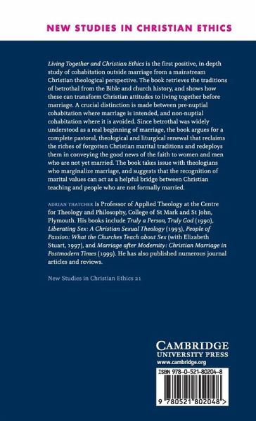 Living Together and Christian Ethics is the first positive, in-depth study of cohabitation outside marriage from a mainstream Christian theological perspective. The book retrieves the traditions of betrothal from the Bible and church history, and shows how these can transform Christian attitudes to living together before marriage. A crucial distinction is made between prenuptial cohabitation where marriage is intended, and nonnuptial cohabitation where it is avoided. Since betrothal was widely understood as a real beginning of marriage, the book argues for a complete pastoral, theological and liturgical renewal that reclaims the riches of forgotten Christian marital traditions and redeploys them in conveying the good news of the faith to women and men who are not yet married. The book takes issue with theologians who marginalize marriage, and suggests that the recognition of marital values can act as a helpful bridge between Christian teaching and people who are not formally married.