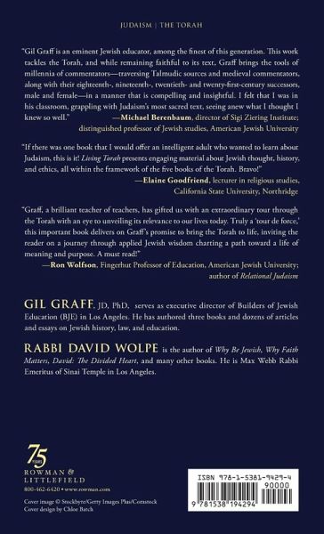 Today there are more than seven million Jews in the United States. As with Americans of all ethnicities and religious persuasions, Jews can identify with and embrace their heritage in any number of ways. Alternatively, they can choose to distance themselves from anything distinctively Jewish. For millennia, the Torah - literally, instruction - the first five books of the Hebrew Bible, has been a centerpiece of Jewish study, thought, and action. Throughout the years, the Torah has been interpreted and applied to life in varying times and places. It has long been customary for Jews to read chapters of the Torah each week as part of an annual cycle of study and synagogue ritual. In the third decade of the twenty-first century, there are Jews who question or doubt the continuing relevance of Jewish texts to their lives. Yet, the search for meaning is enduring, and most American Jews are interested in engaging with a heritage in which they take pride. It is, primarily, for such readers that this book is designed. At the same time, there are people who are not Jewish for whom a book unpacking a Jewish understanding of the Torah might be of interest. The aim of this work is to share ideas, themes, values, and practices that are all part of the living Torah, with full awareness that personal meaning is, by definition, unique to each individual. "Living Torah" describes both Torah as a vibrant text and those who lead Torah-informed lives. "Torah-informed" by no means implies uniformity of life-style. There are a number of books that explore the meaning that Judaism can hold for contemporary Jews and others interested in the wisdom expressed in its classical texts. While these books draw upon classical sources and offer interesting perspectives, none undertakes to systematically introduce the reader to the richness of the Torah text. The uniqueness of this very accessible volume is that it identifies a central theme in each of the five books of the Torah, and, following exploration of the substance of each book, looks at implications of the book's key theme for the lives of contemporary readers The book is comprised of ten chapters, organized as follows: a chapter synopsizing a book of the Torah and identifying its central theme, followed by a chapter applying that theme to the lived experience of Jews in the twenty-first century. The themes explored are: (a) the Jews' relationship to the land of Israel; (b) purpose in history; (c) the pursuit of holiness; (d) living in community; (e) Jewish learning.