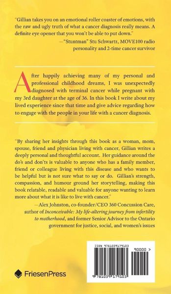 After happily achieving many of my personal and professional childhood dreams, I was unexpectedly diagnosed with terminal cancer while pregnant with my 3rd daughter at the age of 36. In this book I write about my lived experience since that time and give advice regarding how to engage with the people in your life with a cancer diagnosis.