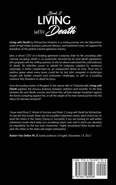 Living with Death by Richard Jan Hoekstra is a riveting journey into the labyrinthine world of high-stakes business, personal demons, and existential crises, set against the global colored gemstone industry.John, a driven CEO of a leading gemstone company, finds his life unraveling after narrowly escaping death in an avalanche. Haunted by his near-death experience, John grapples with the chilling question of why he almost welcomed the cold embrace of death. His relentless pursuit to rebuild his company, crippled by mysterious sabotage, thrusts him into a perilous game where every move could be his last. As he navigates a landscape fraught with hidden enemies and unforeseen challenges, John's struggle extends beyond the corporate boardroom to a profound internal battle.From the bustling streets of Bangkok to the serene hills of Charlottesville, Living with Death explores the tenuous balance between ambition and mortality. As the lines between life and death, success and failure, blur, will John emerge triumphant against the forces conspiring against him, or will the weight of his inner turmoil pull him into the abyss he narrowly escaped?