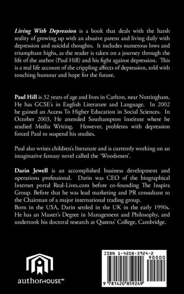 I suffer with depression. Sometimes I want to take my life because of the downward spiral that I find myself in. In this book, I explain the basis of my depression, and how I've manage to live through it. I write 'manage' because people suffering with depression don't actually 'live' a life. They survive, they grind and they 'hold on'. For those coping with depression, life is a constantly a struggle, and for some, it can be a losing struggle. This is the story of my life. It's about my experience of living with depression, but it's not a step-by-step guide on how to live with depression. In fact, I'm not sure you can "beat" depression or be cured from depression. This is a story of how one person living with depression gets through their days and long, long nights. The chapters are organized in chronological order through my school years, my first work experiences, and my arrival to and subsequent departure from university, at the age of 30. In the last two chapters, I write about my own experiences with suicide and my numerous sessions of talking with counsellors. The chapter on suicide was particularly hard to write. It took me back to a time where I never want to return too. The point of this chapter is to highlight and focus on what goes through the mind of a person who is contemplating killing themselves. I want the reader to know, to understand, that before reaching that fateful decision, a person suffering with depression has had a long, agonising journey and along the way, they fight and cling on to any last vestige of life. Millions of people around the world share the symptoms of depression. In the last chapter, I talk about a subject that rarely comes to the fore in the mind of someone suffering with depression - their hopes and aspirations.
