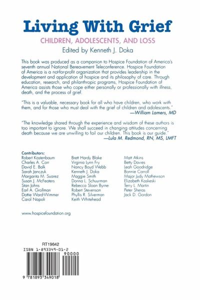 Living With Grief: Children, Adolescents, and Loss, (2000) edited by Kenneth J. Doka, features articles by leading educators and clinicians in the field of grief and bereavement. The chapters entitled "Voices" are the writings of children and adolescents. The book includes a comprehensive resource list of national organizations and a useful bibliography of age-appropriate literature for children and adolescents.