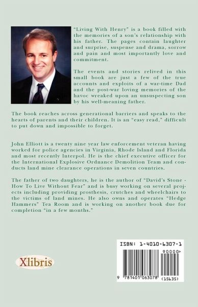 "Living With Henry" is a book filled with the memories of a son's relationship with his father. The pages contain laughter and surprise, suspense and drama, sorrow and pain and most importantly love and commitment. The events and stories relived in this small book are just a few of the true accounts and exploits of a war-time Dad and the post-war loving memories of the havoc wreaked upon an unsuspecting son by his well-meaning father. The book reaches across generational barriers and speaks to the hearts of parents and their children. It is an "easy read," difficult to put down and impossible to forget.