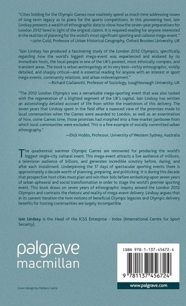 The quadrennial summer Olympic Games are renowned for producing the world's biggest single-city cultural event. This mega-event attracts a live audience of millions, a television audience of billions, and generates incredible scrutiny before, during, and after each installment. This is due to the fact that underpinning the 17 days of spectacular sporting events is approximately a decade worth of planning, preparing, and politicking. It is during this decade that prospective host cities must plan and win their bids before embarking upon seven years of urban upheaval and social transformation in order to stage the world's premier sporting event. This book draws on seven years of ethnographic inquiry around the London 2012 Olympics and contrasts the rhetoric and reality of mega-event delivery. Lindsay argues that in its current iteration the twin notions of beneficial Olympic legacies and Olympic delivery benefits for hosting communities are largely incompatible.