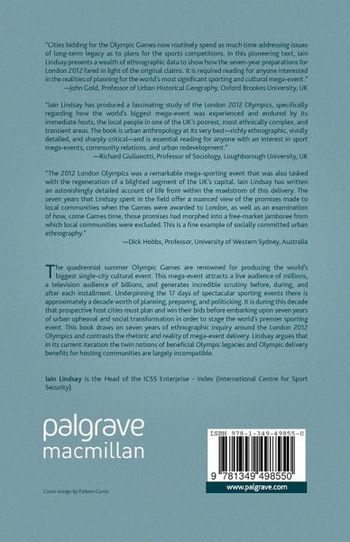 The quadrennial summer Olympic Games are renowned for producing the world's biggest single-city cultural event. This mega-event attracts a live audience of millions, a television audience of billions, and generates incredible scrutiny before, during, and after each installment. This is due to the fact that underpinning the 17 days of spectacular sporting events is approximately a decade worth of planning, preparing, and politicking. It is during this decade that prospective host cities must plan and win their bids before embarking upon seven years of urban upheaval and social transformation in order to stage the world's premier sporting event. This book draws on seven years of ethnographic inquiry around the London 2012 Olympics and contrasts the rhetoric and reality of mega-event delivery. Lindsay argues that in its current iteration the twin notions of beneficial Olympic legacies and Olympic delivery benefits for hosting communities are largely incompatible.