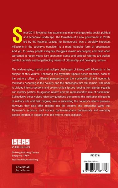 Since 2011 Myanmar has experienced many changes to its social, political and economic landscape. The formation of a new government in 2016, led by the National League for Democracy, was a crucially important milestone in the country's transition to a more inclusive form of governance. And yet, for many people everyday struggles remain unchanged, and have often worsened in recent years. Key economic, social and political reforms are stalled, conflict persists and longstanding issues of citizenship and belonging remain. The wide-ranging, myriad and multiple challenges of Living with Myanmar is the subject of this volume. Following the Myanmar Update series tradition, each of the authors offers a different perspective on the sociopolitical and economic mutations occurring in the country and the challenges that still remain. The book is divided into six sections and covers critical issues ranging from gender equality and identity politics, to agrarian reform and the representative role of parliament. Collectively, these voices raise key questions concerning the institutional legacies of military rule and their ongoing role in subverting the country's reform process. However, they also offer insights into the creative and productive ways that Myanmar's activists, civil society, parliamentarians, bureaucrats and everyday people attempt to engage with and reform those legacies.