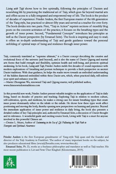 Living with Taiji is the product of decades of experience: Grandmaster Frieder Anders has practiced Yang-style Taiji for almost fifty years, served as a teacher for over forty years, and applied its methods to nourish life for over twenty years. The book divides into two parts. First, "Taiji in Action" reprints sections of monthly blog posts on the concrete activation of the practice; it focuses on the breathing types and the growth of inner power. Second, "Fundamental Concepts" introduces key principles as well as the Daoist perspective (by Emmanuel Seitz). The book is inspiring and easy to read; it offers an in-depth understanding of Taiji and gentle guidance toward the personal unfolding of optimal ways of being and resilience through inner power.