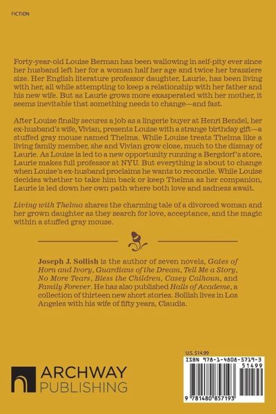 Forty-year-old Louise Berman has been wallowing in self-pity ever since her husband left her for a woman half her age and twice her brassiere size. Her English literature professor daughter, Laurie, has been living with her, all while attempting to keep a relationship with her father and his new wife. But as Laurie grows more exasperated with her mother, it seems inevitable that something needs to changeand fast. After Louise finally secures a job as a lingerie buyer at Henri Bendel, her ex-husbands wife, Vivian, presents Louise with a strange birthday gifta stuffed gray mouse named Thelma. While Louise treats Thelma like a living family member, she and Vivian grow close, much to the dismay of Laurie. As Louise is led to a new opportunity running a Bergdorfs store, Laurie makes full professor at NYU. But everything is about to change when Louises ex-husband proclaims he wants to reconcile. While Louise decides whether to take him back or keep Thelma as her companion, Laurie is led down her own path where both love and sadness await. Living with Thelma shares the charming tale of a divorced woman and her grown daughter as they search for love, acceptance, and the magic within a stuffed gray mouse.