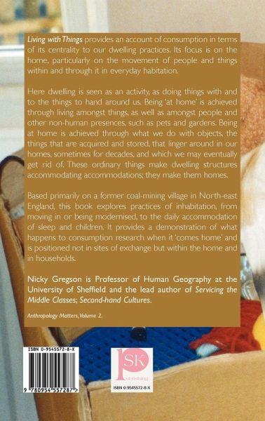 Living with Things provides an account of consumption in terms of its centrality to our dwelling practices. Its focus is on the home, particularly on the movement of people and things within and through it in everyday habitation. Here dwelling is seen as an activity, as doing things with and to the things to hand around us. Being 'at home' is achieved through living amongst things, as well as amongst people and other non-human presences, such as pets and gardens. Being at home is achieved through what we do with objects, the things that are acquired and stored, that linger around in our homes, sometimes for decades, and which we may eventually get rid of. These ordinary things make dwelling structures accommodating accommodations; they make them homes. Based primarily on a former coal-mining village in North-east England, this book explores practices of inhabitation, from moving in or being modernised, to the daily accommodation of sleep and children. It provides a demonstration of what happens to consumption research when it 'comes home' and is positioned not in sites of exchange but within the home and in households.