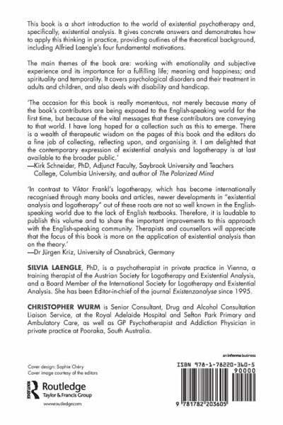 This multi-author anthology is a short introduction to the world of existential psychotherapy, and specifically Existential Analysis. It gives concrete answers and demonstrates a way to apply this thinking in practice, providing outlines of its theoretical background, including Alfried Langle's four fundamental motivations.