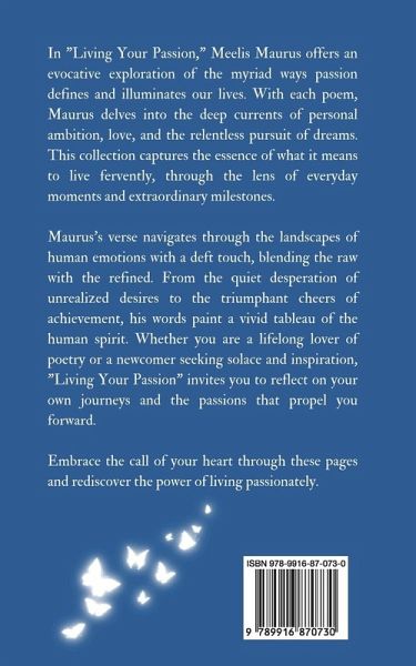 In "Living Your Passion," Meelis Maurus offers an evocative exploration of the myriad ways passion defines and illuminates our lives. With each poem, Maurus delves into the deep currents of personal ambition, love, and the relentless pursuit of dreams. This collection captures the essence of what it means to live fervently, through the lens of everyday moments and extraordinary milestones. Maurus's verse navigates through the landscapes of human emotions with a deft touch, blending the raw with the refined. From the quiet desperation of unrealized desires to the triumphant cheers of achievement, his words paint a vivid tableau of the human spirit. Whether you are a lifelong lover of poetry or a newcomer seeking solace and inspiration, "Living Your Passion" invites you to reflect on your own journeys and the passions that propel you forward. Embrace the call of your heart through these pages and rediscover the power of living passionately. Copyright © 2024 Book Fairy Publishing