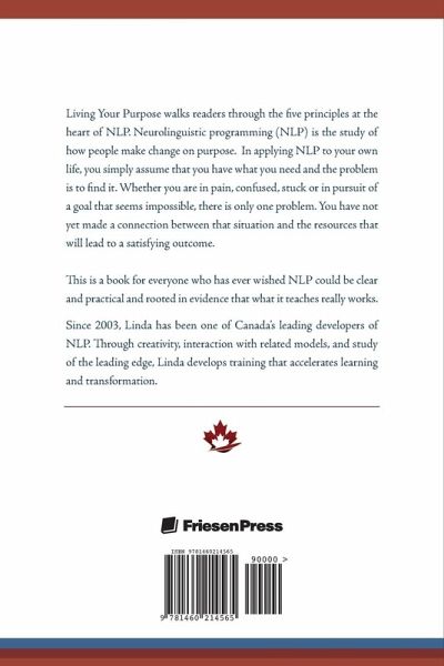 Living Your Purpose walks readers through the five principles at the heart of NLP. Neurolinguistic programming (NLP) is the study of how people make change on purpose. In applying NLP to your own life, you simply assume that you have what you need and the problem is to find it. Whether you are in pain, confused, stuck or in pursuit of a goal that seems impossible, there is only one problem. You have not yet made a connection between that situation and the resources that will lead to a satisfying outcome. This is a book for everyone who has ever wished NLP could be clear and practical and rooted in evidence that what it teaches really works. Since 2003, Linda has been one of Canada's leading developers of NLP. Through creativity, interaction with related models, and study of the leading edge, Linda develops training that accelerates learning and transformation.