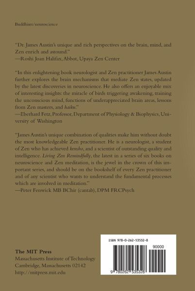 A seasoned Zen practitioner and neurologist looks more deeply at mindfulness, connecting it to our subconscious and to memory and creativity. This is a book for readers who want to probe more deeply into mindfulness. It goes beyond the casual, once-in-awhile meditation in popular culture, grounding mindfulness in daily practice, Zen teachings, and recent research in neuroscience. In Living Zen Remindfully, James Austin, author of the groundbreaking Zen and the Brain, describes authentic Zen training—the commitment to a process of regular, ongoing daily life practice. This training process enables us to unlearn unfruitful habits, develop more wholesome ones, and lead a more genuinely creative life. Austin shows that mindfulness can mean more than our being conscious of the immediate "now.” It can extend into the subconscious, where most of our brain's activities take place, invisibly. Austin suggests ways that long-term meditative training helps cultivate the hidden, affirmative resource of our unconscious memory. Remindfulness, as Austin terms it, can help us to adapt more effectively and to live more authentic lives. Austin discusses different types of meditation, meditation and problem-solving, and the meaning of enlightenment. He addresses egocentrism (self-centeredness) and allocentrism (other-centeredness), and the blending of focal and global attention. He explains the remarkable processes that encode, store, and retrieve our memories, focusing on the covert, helpful remindful processes incubating at subconscious levels. And he considers the illuminating confluence of Zen, clinical neurology, and neuroscience. Finally, he describes an everyday life of "living Zen,” drawing on the poetry of Basho, the seventeenth-century haiku master.