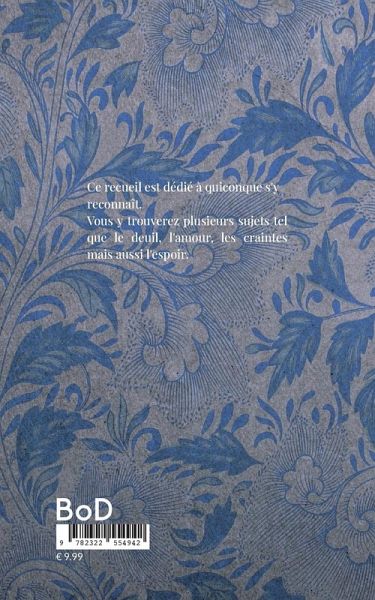 Ce livre est un recueil de poèmes. Vous y trouverez plusieurs sujets tel que le deuil, l'amour, les craintes mais aussi l'espoir. Ce recueil est dédié à quiconque se reconnait dans un ou même plusieurs poèmes.