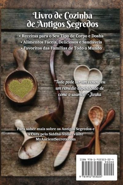 "Se mudar a sua alimentação, pode mudar o seu futuro." Há segredos na dieta que podem ajudar as pessoas a viver mais tempo, ter uma vida saudável, & feliz? E se uma alimentação saudável também pudesse ser fácil e deliciosa? O Livro de Receitas foi inspirado por Dr. Pankaj Naram e por Dr. Clint G. Rogers PhD. Dr. Naram foi um grande curador que ajudou milhões de pessoas em todo o mundo usando Antigos Segredos da natureza. Antes de falecer, ele transmitiu esses segredos aos seus alunos, incluindo Dr. Clint G. Rogers, que colocou muitos deles num livro chamado Antigos Segredos de um Mestre Curador. Este Livro de Receitas de Antigos Segredos implementa muitas das ideias do livro Antigos Segredos e oferece-lhe opções de comer que não lhe causam dor e sofrimento. Não é fácil cortar glúten, açúcar refinado, laticínios e vegetais de beladona, mas se puder mudar o que come, poderá mudar a sua vida! Estas receitas foram contribuídas por pessoas de todo o mundo que estão a aprender e a aplicar estes antigos segredos para melhorar a saúde, a energia vibrante e a paz de espírito que advém de ser bom consigo mesmo.